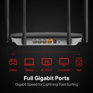 Portovi : 1x 10/100/1000 Mbps WAN Port, 3 x 10/100/1000 Mbps LAN Port